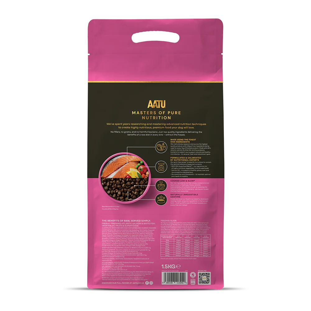 AATU for Puppies is handcrafted in small batch recipes, naturally made without artificial colours, without artificial preservatives, without artificial flavours and without GM ingredients. The fresh and raw protein is pre-cooked using our "low & slow"TM method to ensure efficient digestion of the meats.