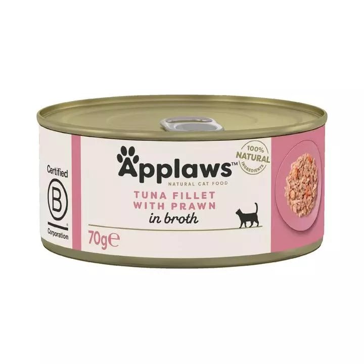Applaws Tuna Fillet with Prawn in Broth contains nothing more than the ingredients listed and is a 100% natural complementary pet food for adult cats.