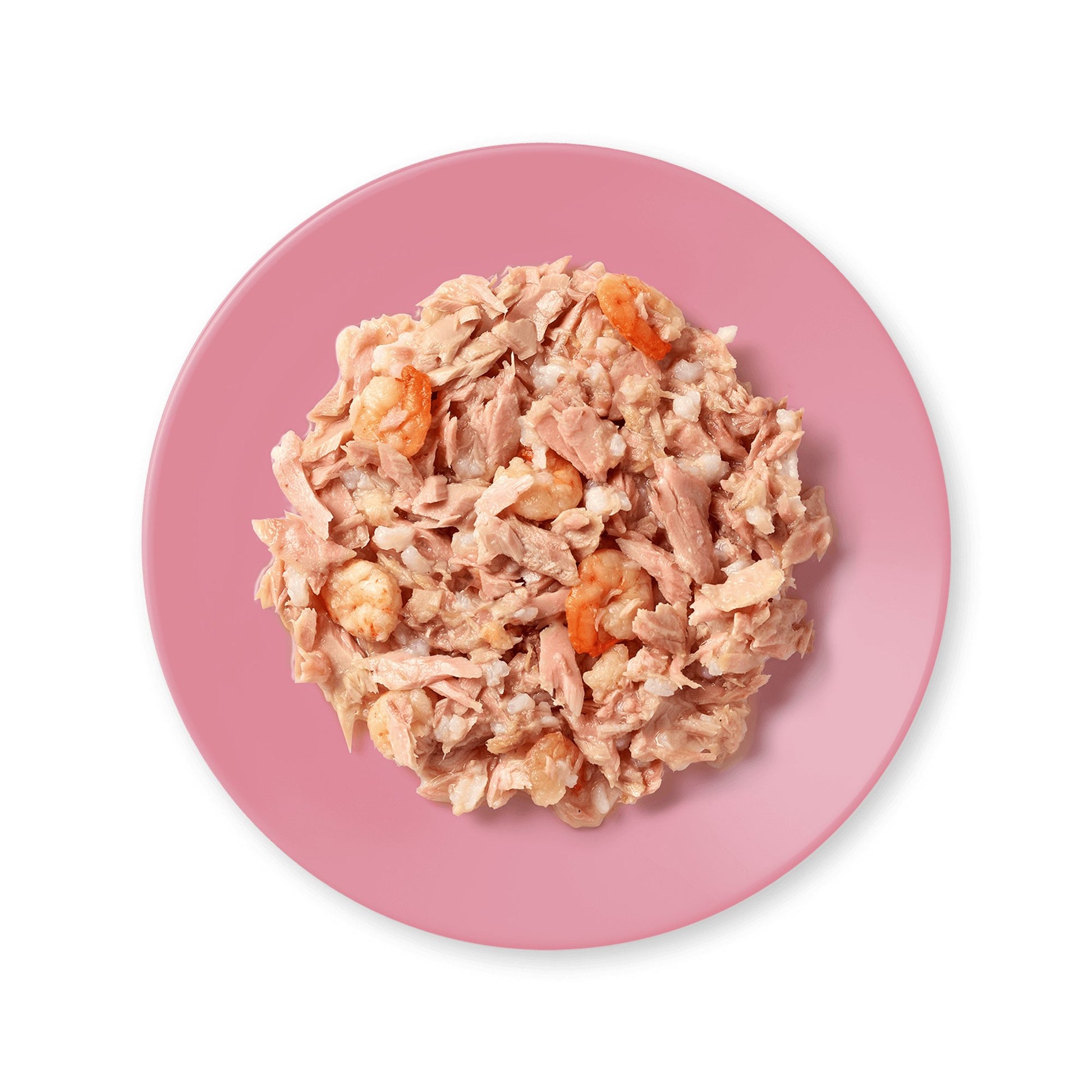 Tuna Fillet 52%, Fish Broth, Prawn 23%, Rice.