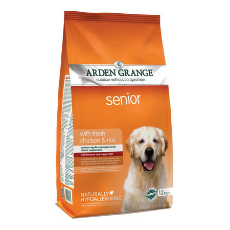 Arden Grange senior dog food has been made for dogs that are entering their golden years. If your dog is over 7 years of age then you may look to move them onto Arden Granges fresh chicken and rice senior dog food. It contains all the same healthy, wholesome and natural ingredients as the adult range but it also has increased levels of glucosamine, chondroitin and MSM for extra protection against age related health problems.