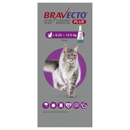 Formulated with the active ingredients Fluralaner and Moxidectin, Bravecto Plus works by disrupting the nervous system of parasites, leading to their rapid elimination. It provides up to 12 weeks of protection against fleas and ticks, while also safeguarding your cat from internal parasites and heartworm disease.