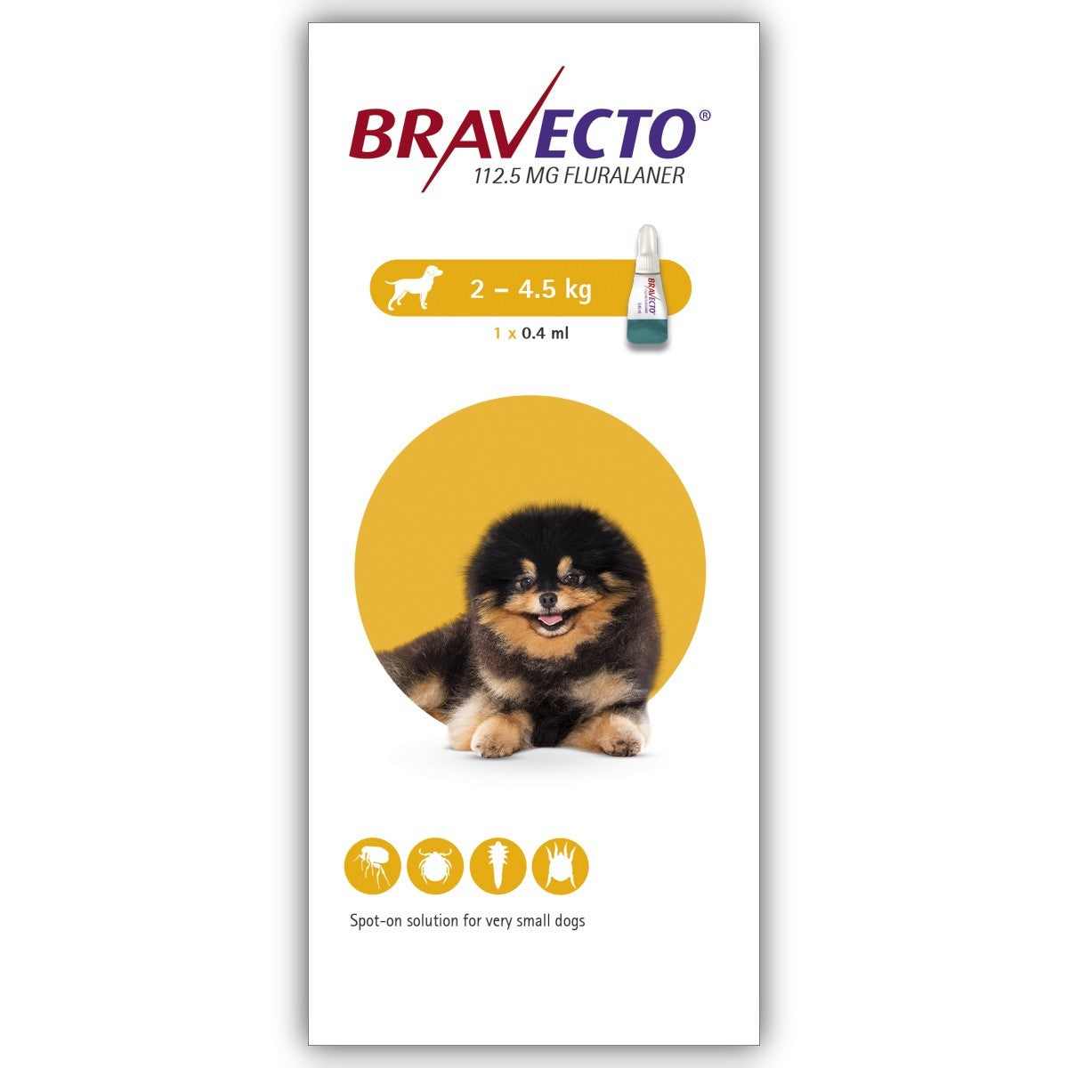 Bravecto® 112.5mg Spot-On Solution for Toy Dogs (2–4.5kg) provides up to 12 weeks of protection against fleas and ticks with a single topical dose.