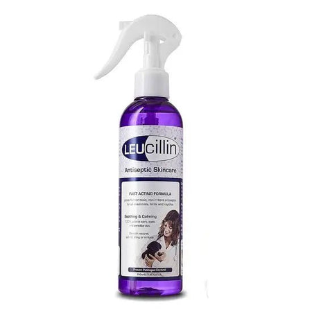 Suitable for use on all mammals, birds and reptiles; Leucillin is an innovative, reliable and affordable solution for a wide variety of skin types. Leucillin out-performs other products with its ability to kill up to 99.99999% of germs. Leucillin is used to clean and flush minor wounds, Leucillin is soothing to sensitive skin, yet provides you with a powerful solution.