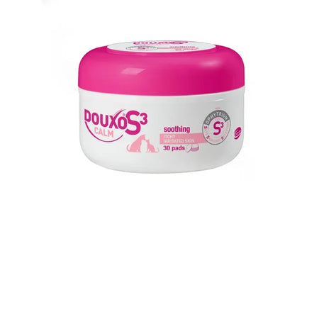 DOUXO® S3 CALM Pads are designed to soothe itchy, irritated, and sensitive skin in dogs and cats. These pads help balance the skin's microbiota, protect the skin barrier from allergens, and improve skin hydration. They are formulated with Ophytrium, a natural ingredient known for its high tolerance and simultaneous threefold action on the skin barriers: protecting, equilibrating, and soothing the skin.
