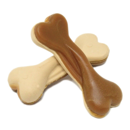 Mak's Patch Peanut Butter Dual Sided Bone Dog Treats feature Sweet Potato & Peas as the main components, with additional flavors of spinach and apple incorporated in the production process.
