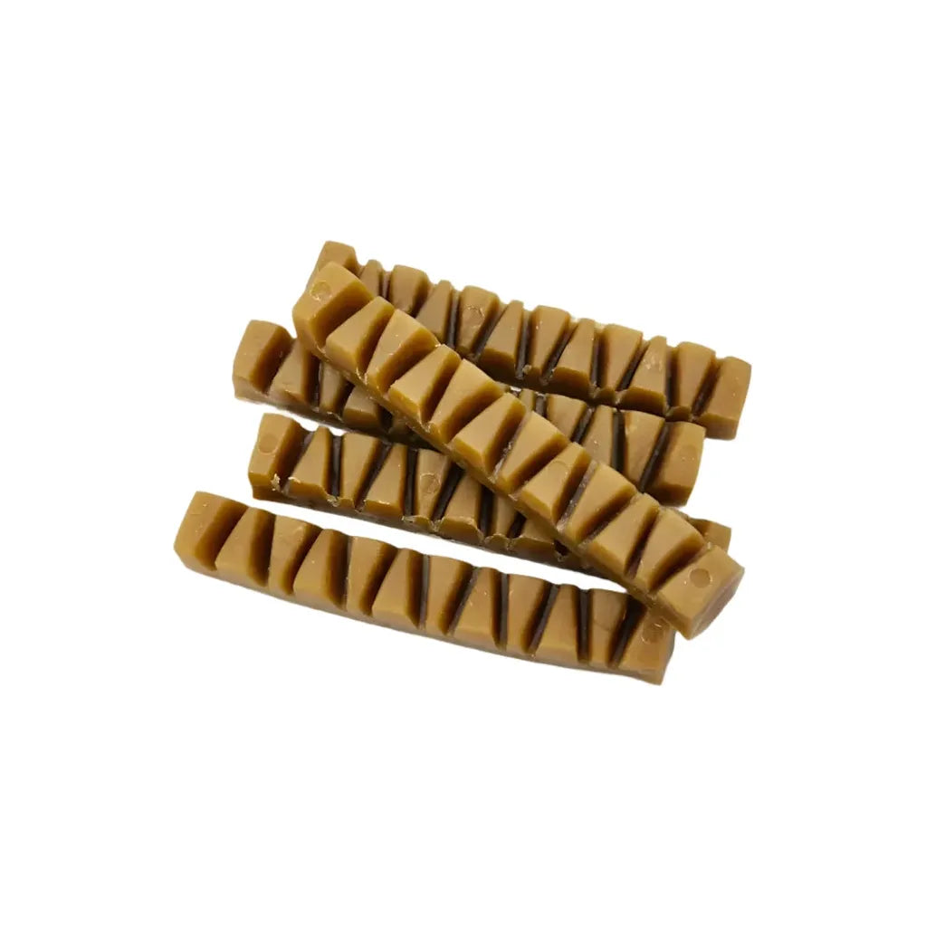 This peanut butter dog treat bar is vegan, free from xylitol and palm oil, and can be easily broken into smaller chunks. It is just one of the many options available from the Maks Patch range of natural vegetarian dog chews, known for their irresistible taste. Plus, it's gluten-free, meat-free, and low in fat, making it a healthy and delicious treat for dogs and puppies over 6 months old.