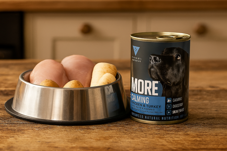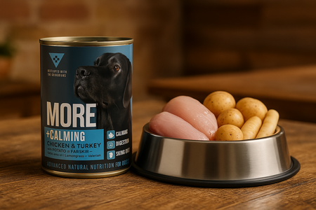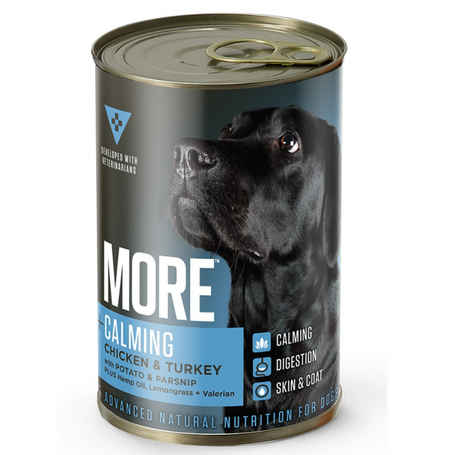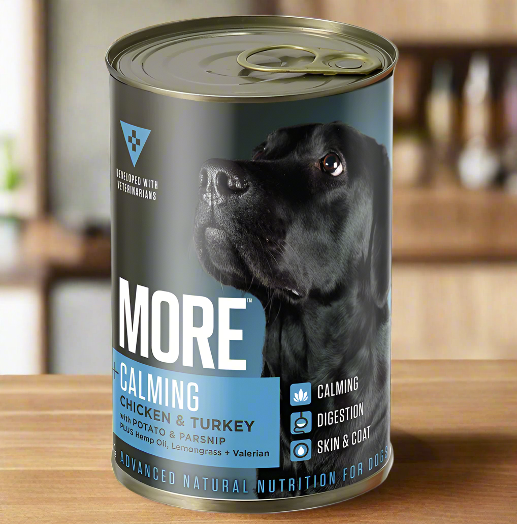 Soothe your dog from the inside out with More +Support Calming — a complete wet food created alongside veterinary professionals to support your dog’s wellbeing, digestion, and mood.