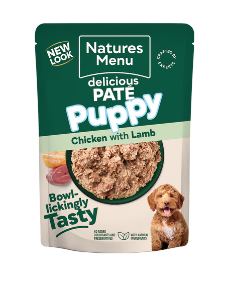 Puppies can eat lamb – and they love it! That’s why our 68% real chicken with lamb, complete and balanced puppy pouches are prepared with quality whole cuts of chicken, lamb, and rice, and are suitable from weaning age.