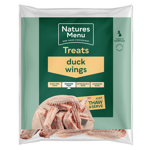 Our responsibly sourced Duck Wings are packed with soft bone, cartilage and connective tissue that make for a delicious, crunchy treat. Full of natural nutrients duck wings can be fed as a snack or as part of a home prepared raw meal.