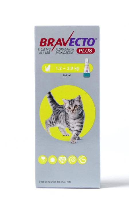 Bravecto Plus is a prescription-only spot-on treatment for small cats weighing 1.2–2.8kg. It’s designed to protect against a wide range of parasites with a single application.
