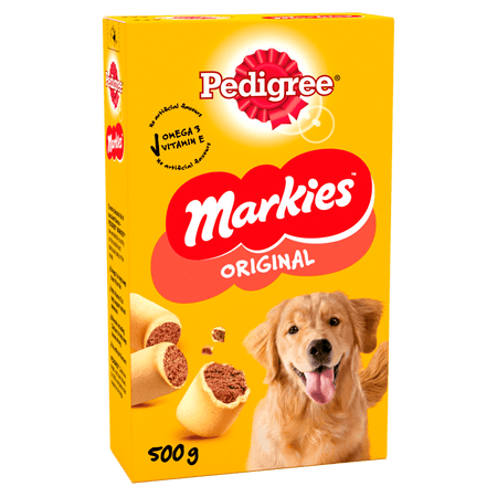 Crunchy biscuits full of succulent flavour - PEDIGREE® MARKIES™ are wonderfully crunchy on the outside and deliciously tasty on the inside.