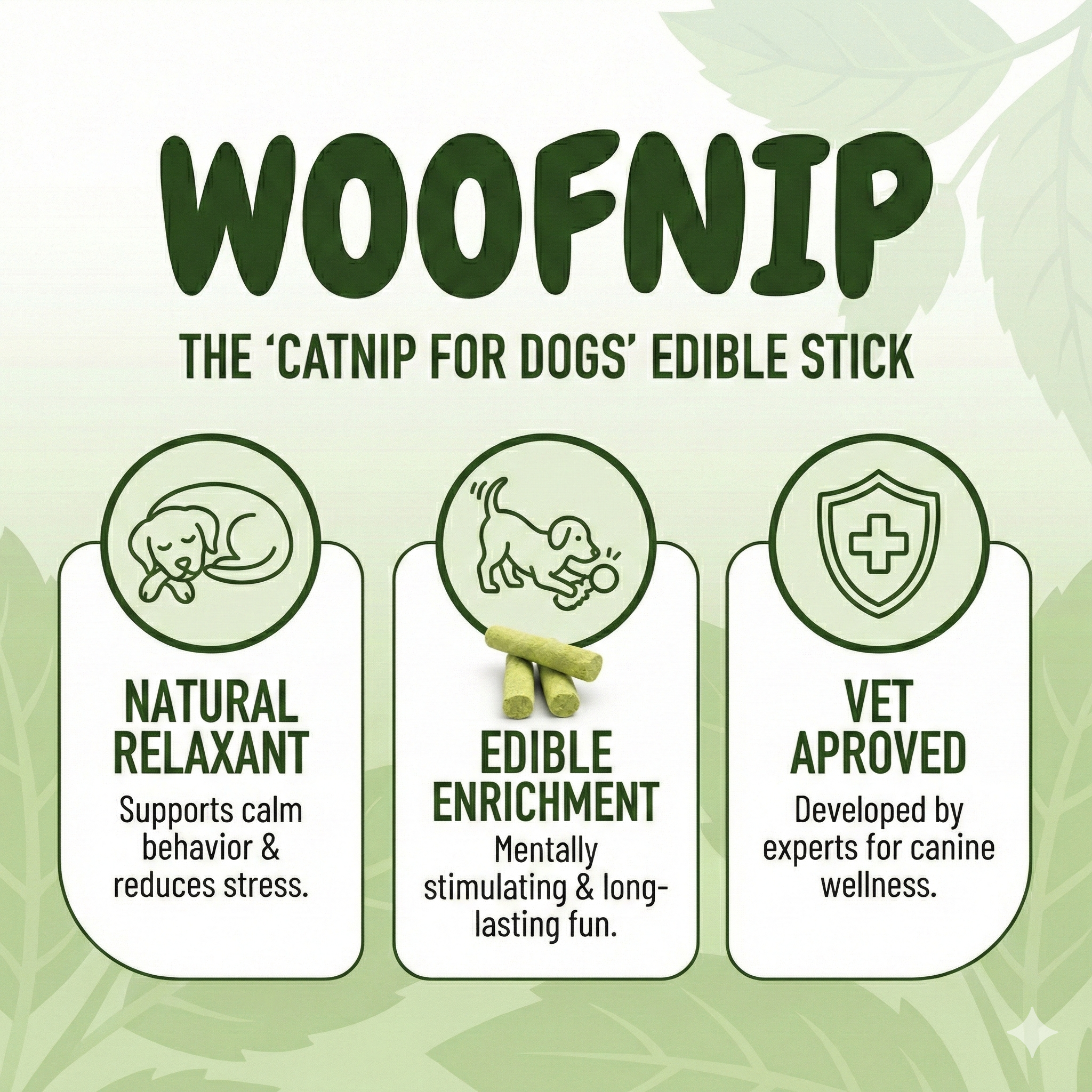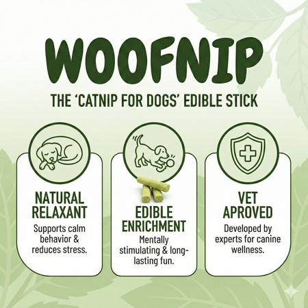Meet Woofnip – a unique, single-ingredient chew made with premium catnip, specially designed for dogs.