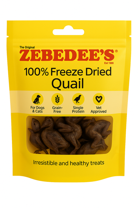 Give your dog or cat a natural, high-protein treat that delivers real nutritional value. Zebedee’s 100% Freeze Dried Quail contains whole baby quails that have been gently freeze dried to preserve their flavour, nutrients, and crunch. This species-appropriate treat suits raw-fed pets, fussy eaters, and animals with dietary sensitivities.